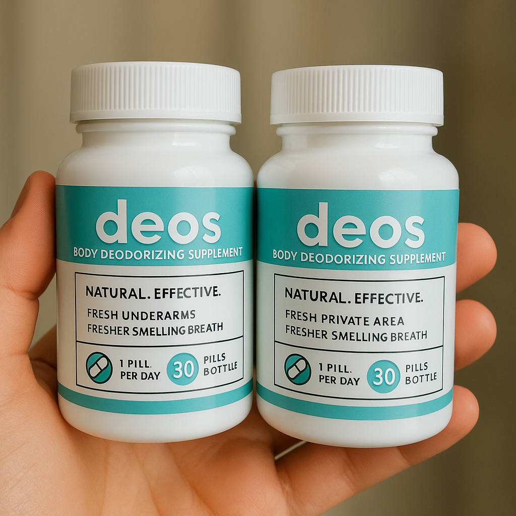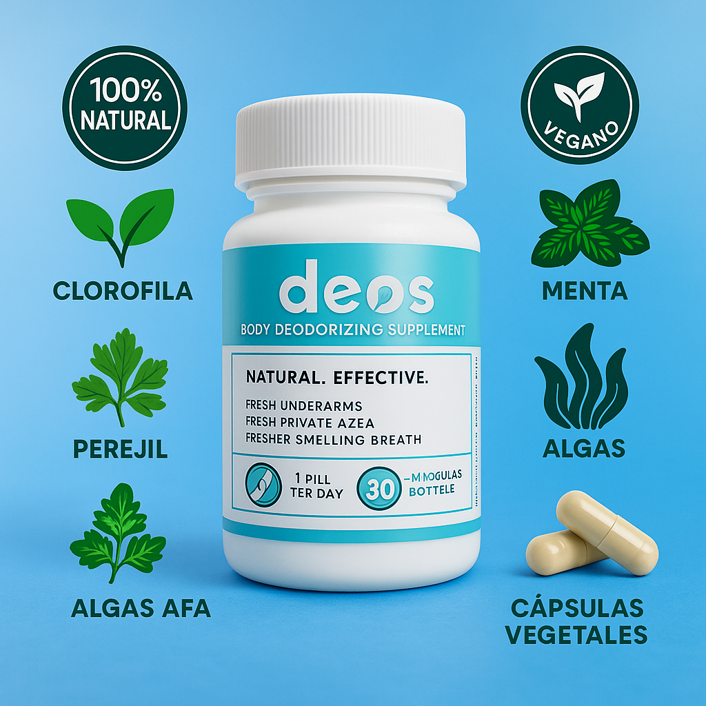 DEOS utiliza una combinación única de ingredientes naturales que trabajan desde el interior para neutralizar los olores corporales y mejorar tu bienestar general.