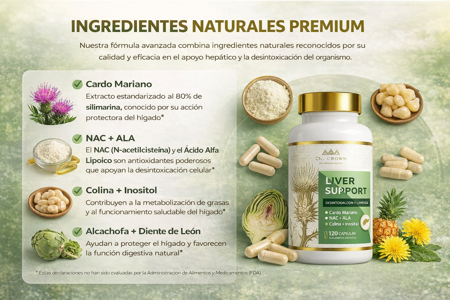 Nuestra fórmula avanzada combina ingredientes cuidadosamente seleccionados para apoyar la salud del hígado, la desintoxicación natural y el bienestar general.